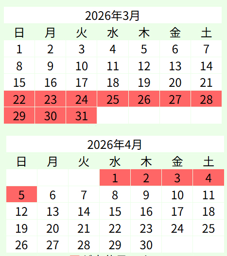 休業期間:2026年3月22日(日)〜 4月5日(日)