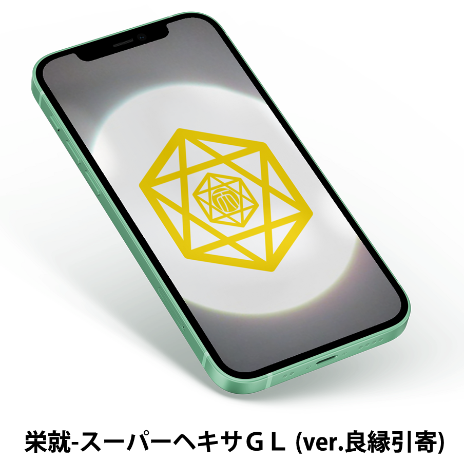 良縁の引寄せを強化させたバージョンになります。独身女性専用です。良縁成就を求める独身女性に最適な開運待受けとなります。既婚女性は利用しないでください。栄就-スーパーヘキサGLをに、良縁を引き寄せる言霊を追加し、良縁成就を助ける効果を狙っています。